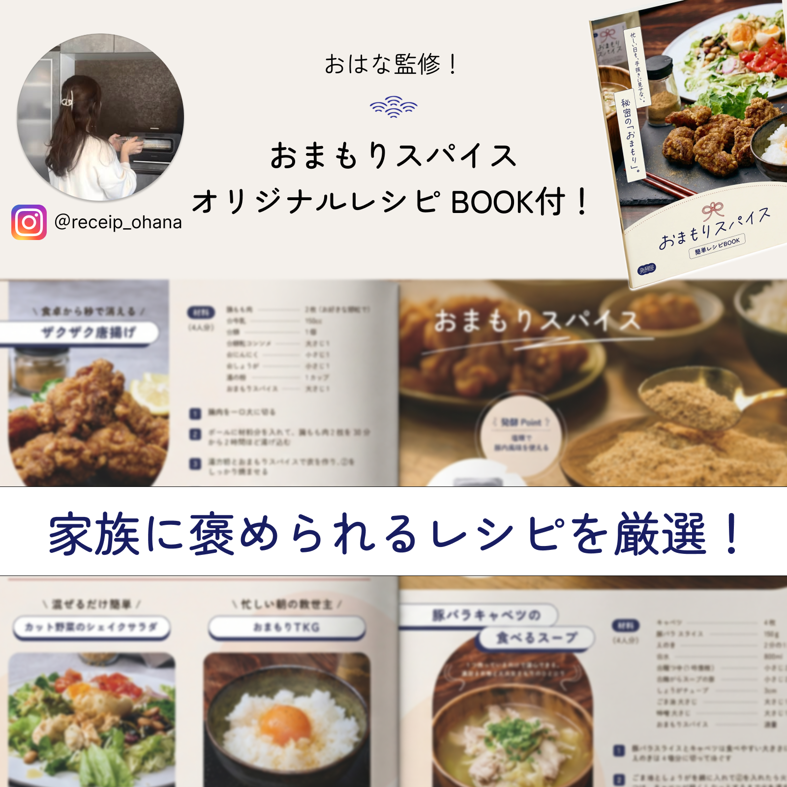 ご購入者様には、おはな監修の『おまもりオリジナルスパイスレシピBOOK』をプレゼント! ・簡単時短レシピを多数掲載しています。